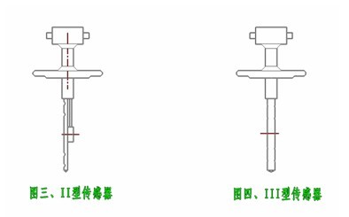 3.2.1、Ⅰ型,適用于(20~50)㎜的管道,外形如圖2所示。其檢測桿直徑一般為4.5~6.5㎜,傳感器與管道的連接方式有兩種:一種是螺紋連接,另一種是法蘭連接。用于高壓測量時(shí)都采用法蘭連接3.2.2、Ⅱ型,適用于40~100㎜的管道,外形如圖3所示。